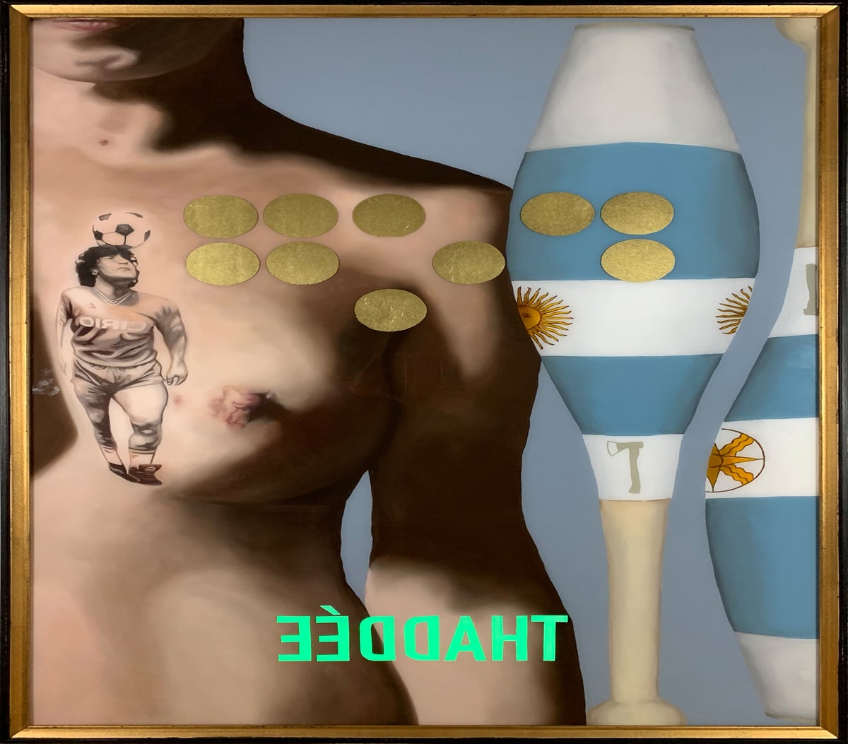 Apostel - Cross, Oil on Acrylic , Lightbox, Gold leaf,120 x80 cm, 2022