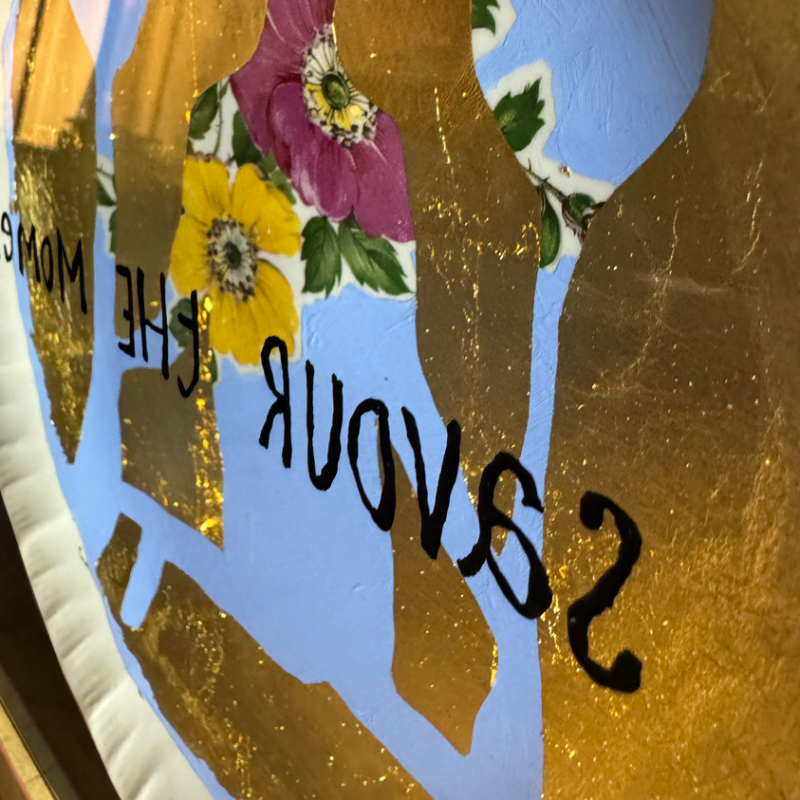 Painting on porcelain plate and glass, gold leaf (22 c.), 30x30cm, 2025