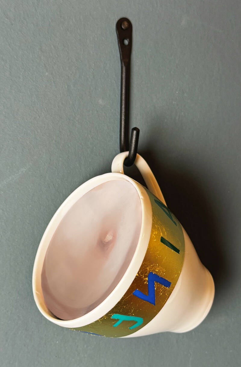 3. Cup, painting on acrylic, gold leaf, wall hanger, 8x8cm