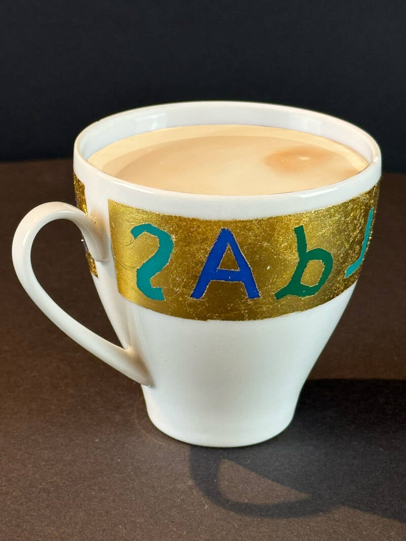 6. Cup, painting on acrylic, gold leaf, wall hanger, 8x8cm